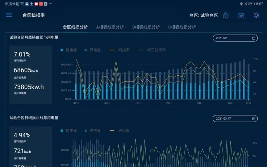 台区月线损曲线与用电量分析、台区日线损曲线与电量分析、台区功率线损曲线分析