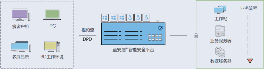 至安盾以安全访问控制、安全接入协议等为基础,结合安全桌面服务,建立多层次、可视化的安全策略体系和适合多种角色和职能的业务空间环境,为政企提供安全、敏捷、高效的一站式安全解决方案。