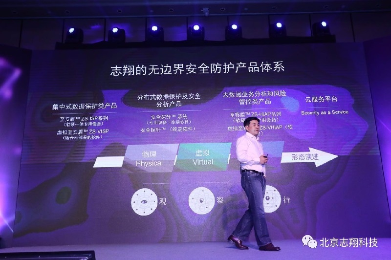 志翔科技产品副总裁、联合创始人伍海桑博士介绍,志翔科技定位于大数据安全领域,目前主要面向两大业务,通过三项核心技术支撑四个产品,重点面向六大行业提供服务,为用户构建完备的网络安全空间。