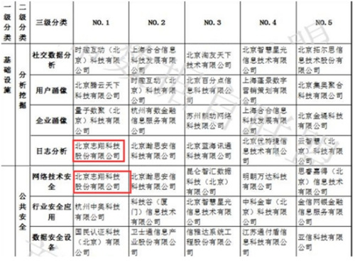 《中国大数据企业排行榜》部分榜单
