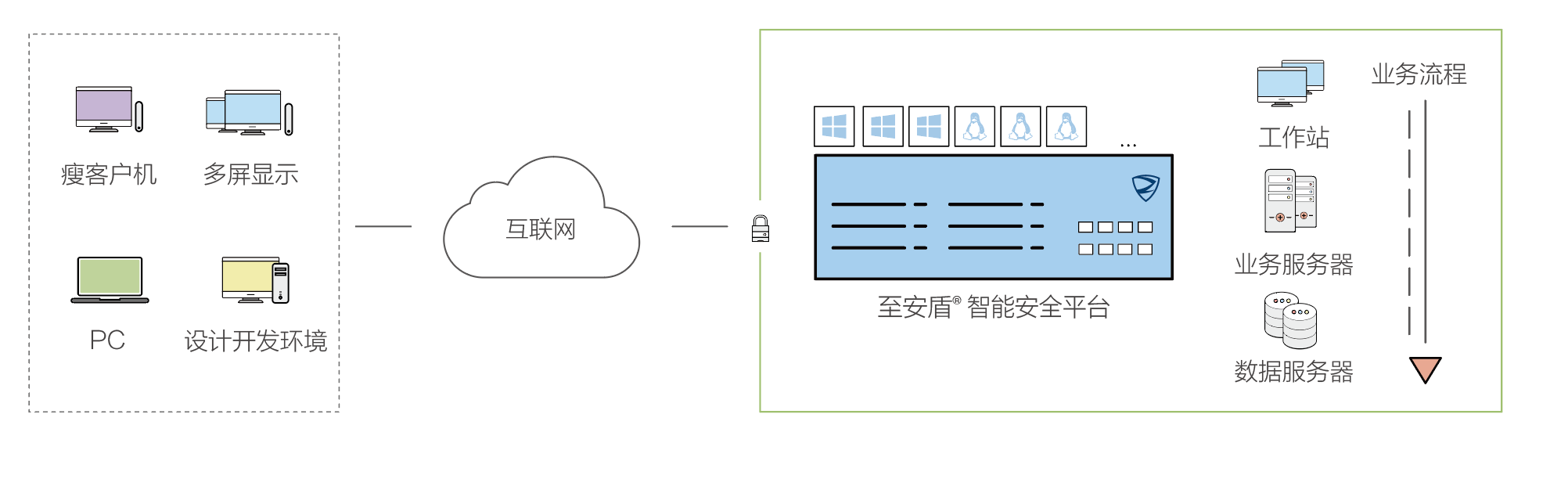 本方案以至安盾ZS-ISP产品为核心,提供集网络安全接入、数据安全管理、桌面调度管理等为一体的远程办公安全防护体系。